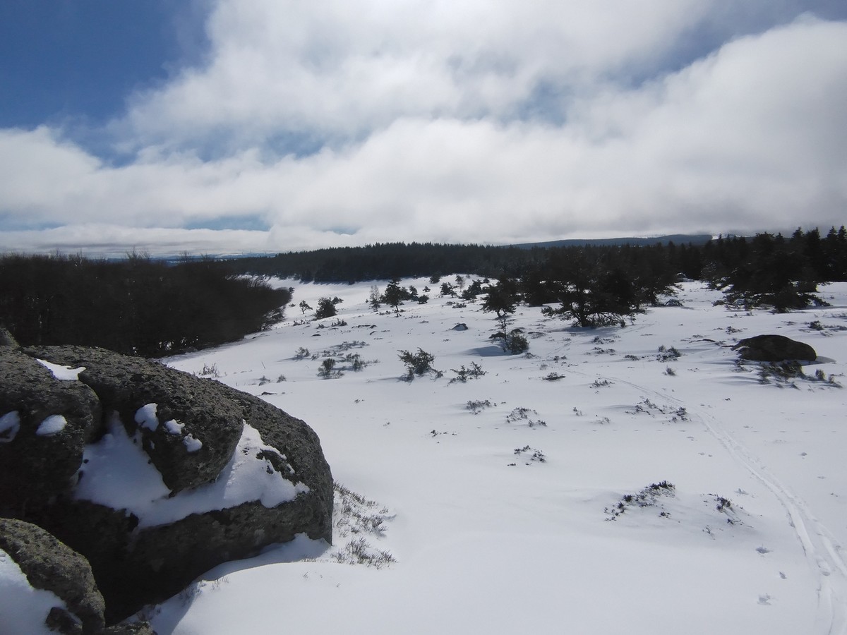 Je suis encore allé skier sur les crêtes ce matin. Environ 20 cm sur les pistes forestières larges ; dans les parties découvertes c’est variable car le vent a fait son œuvre. La quantité de neige décroit rapidement avec l’altitude : 1350 est la limite.