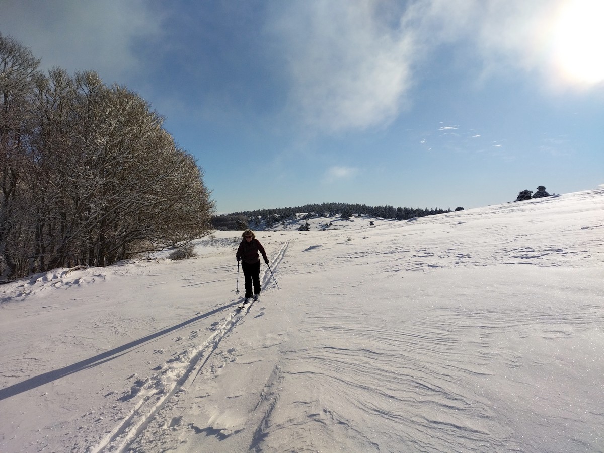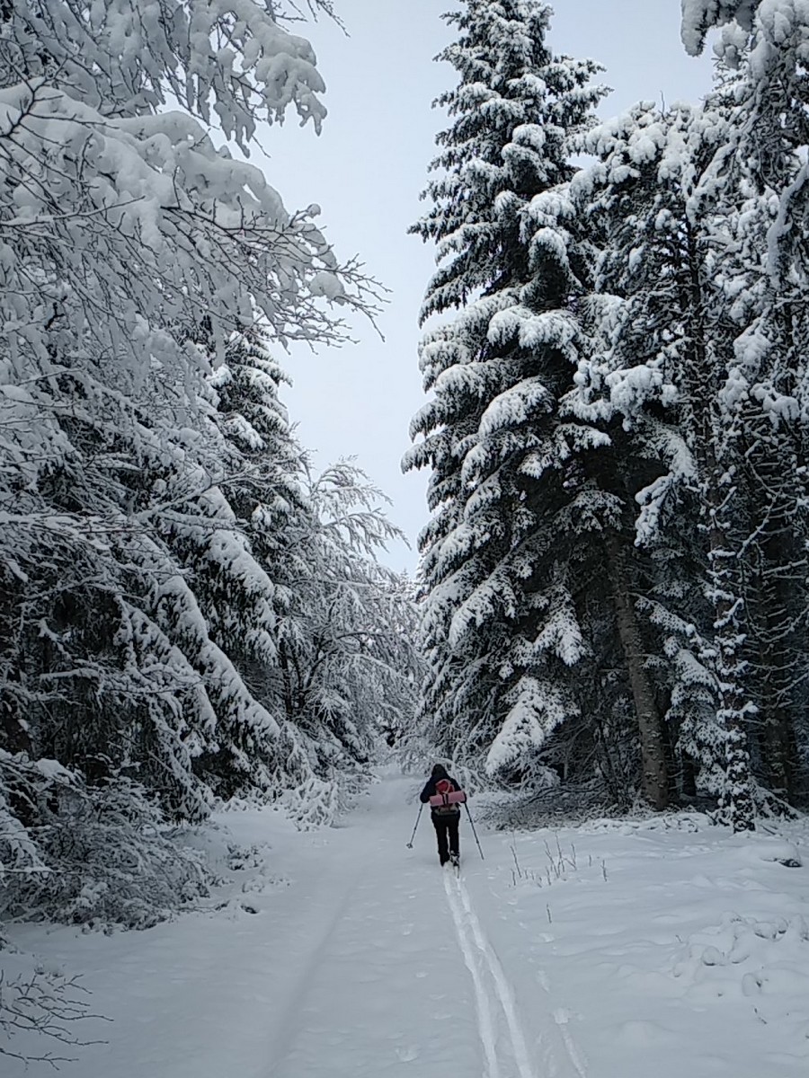 Il m’a semblé y avoir d’avantage de neige sur le versant ouest de la Margeride que sur celui de l’est. Les pistes forestières sont bien en neige et peu encombrés par des casses d’arbres ou de branche (en tout cas moins que dans le secteur de Charpal).