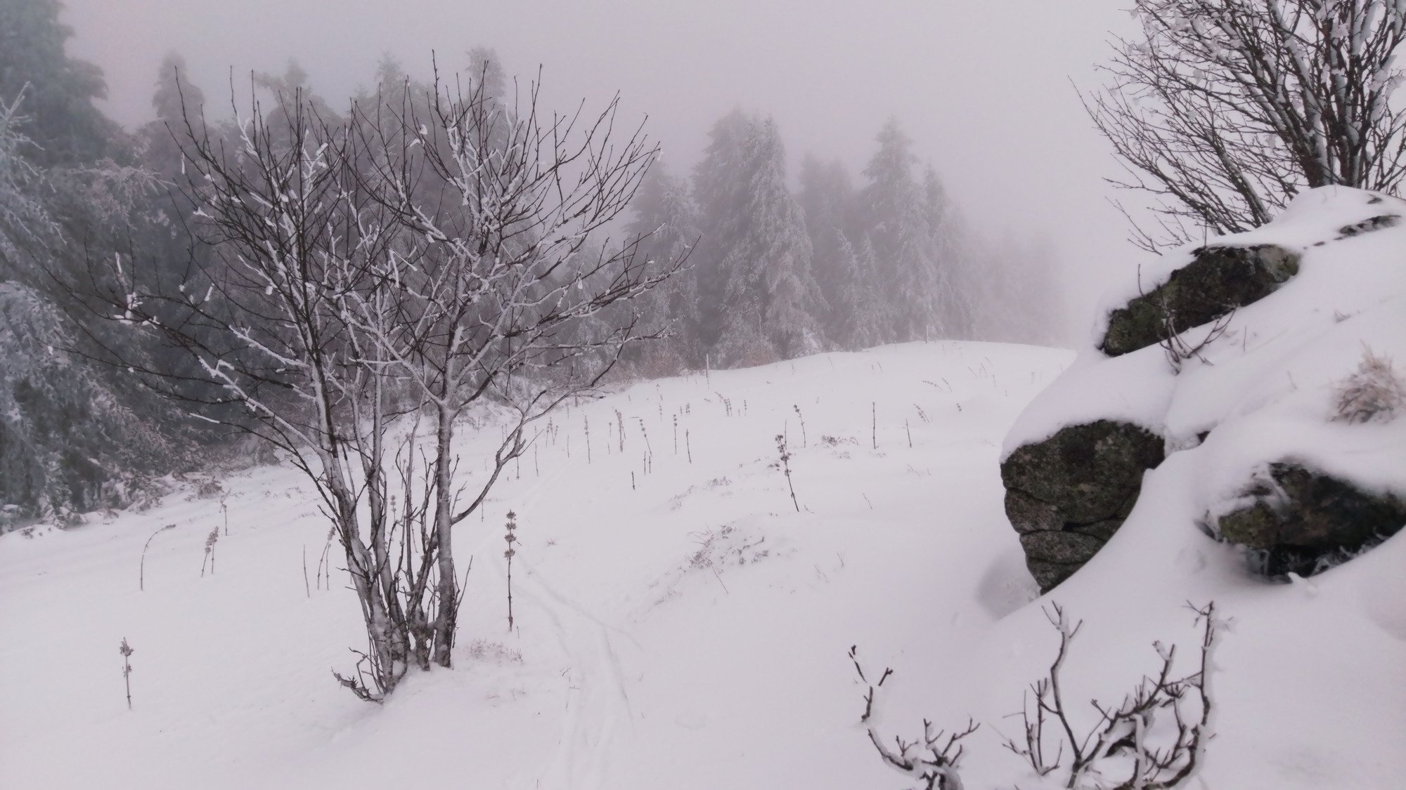 une 20 aine de cm de neige lourde au départ de Prabouré mais qui porte assez bien sur le plateau de la Fayolle, (neige plaqué par le vent+ congères).