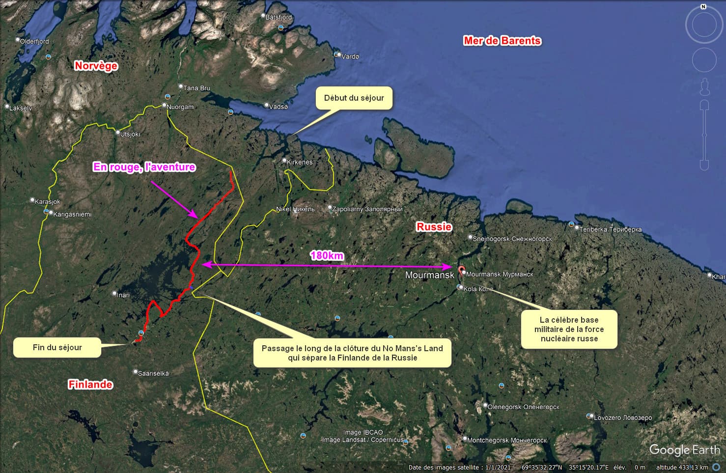 Je serai sur les skis/raquettes pendant 20 jours, une trace d’au moins 195 km, avec des séjours à Kirkenes et Ivalo, pour un mois complet en Laponie en février 2026.